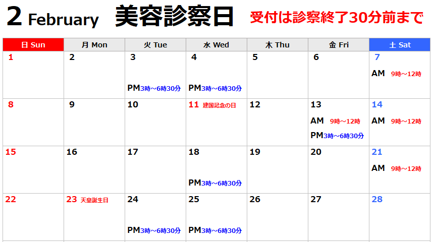 美容診療・施術は混雑することが多いため、ご予約の時間に余裕を持って来院をお願いいたします。